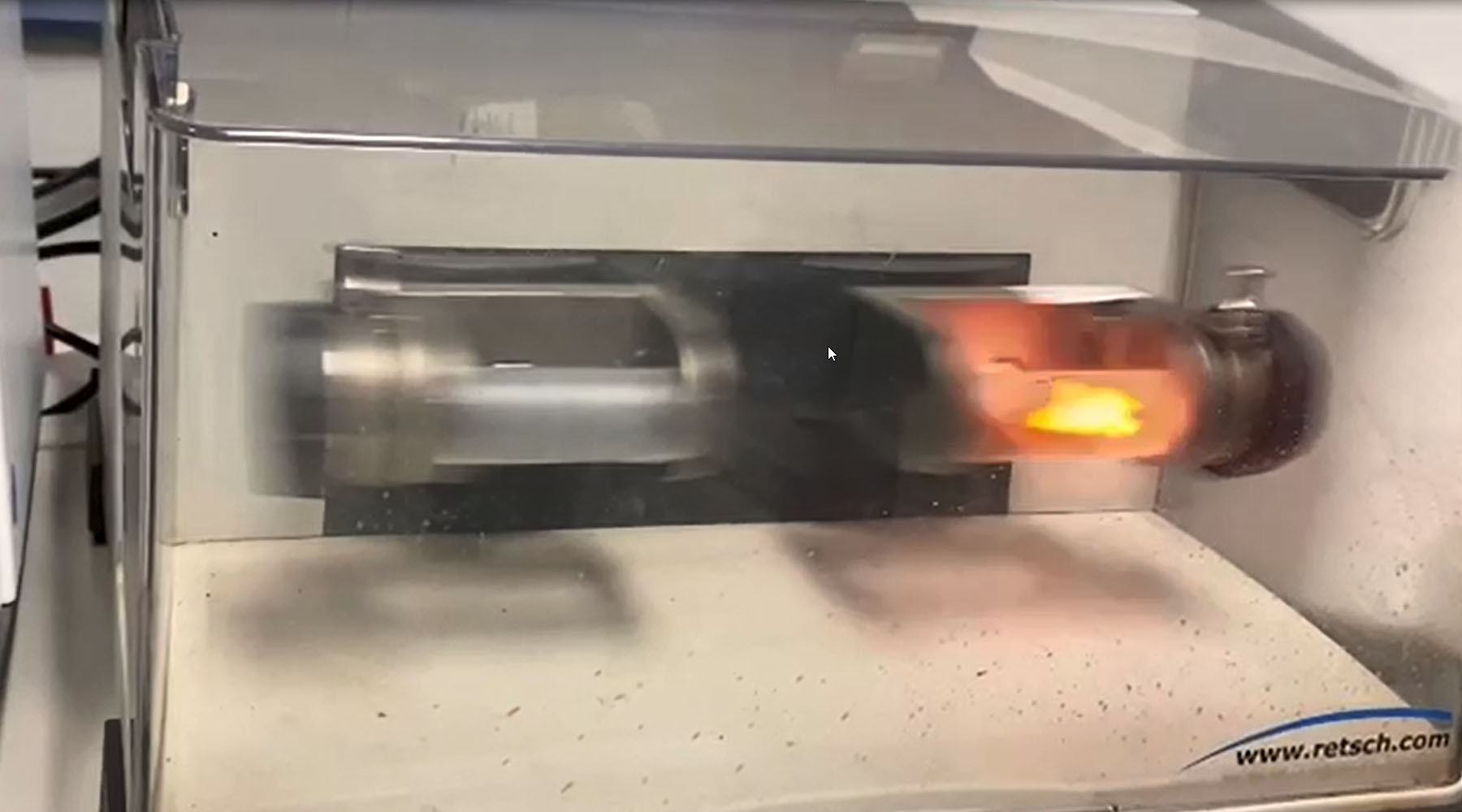 The interplay of jar geometry and movement causes strong friction between the grinding balls, sample material and jar walls as well as a rapid acceleration which lets the balls impact with great force on the sample at the rounded ends of the jars. This significantly improves the mixing of the particles resulting in smaller grind sizes and narrower particle size distributions than is possible with other ball mills.