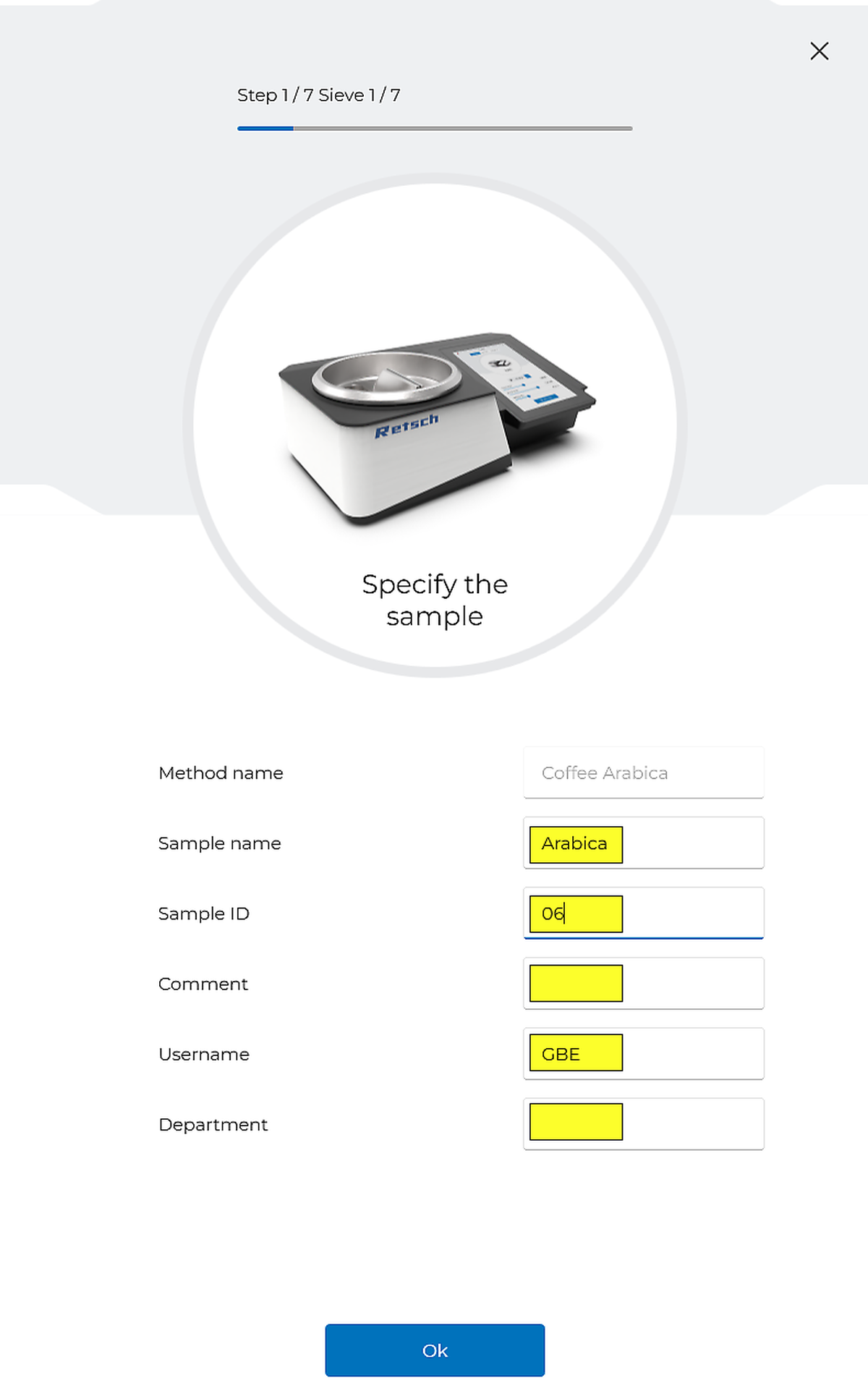 The “Weighing Assistant” exclusively can be used with RETSCH test sieves and can easily be activated/deactivated in the method.